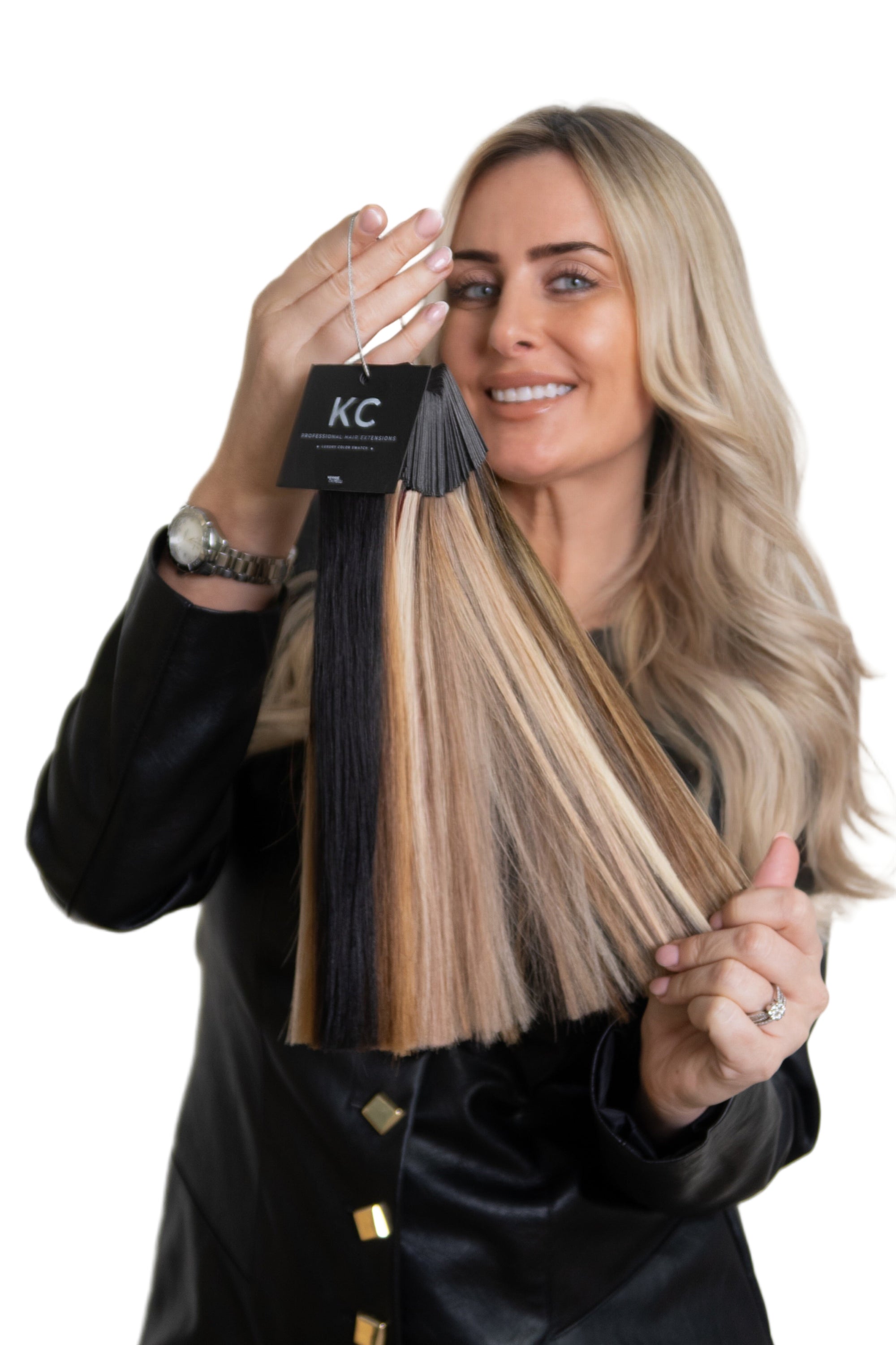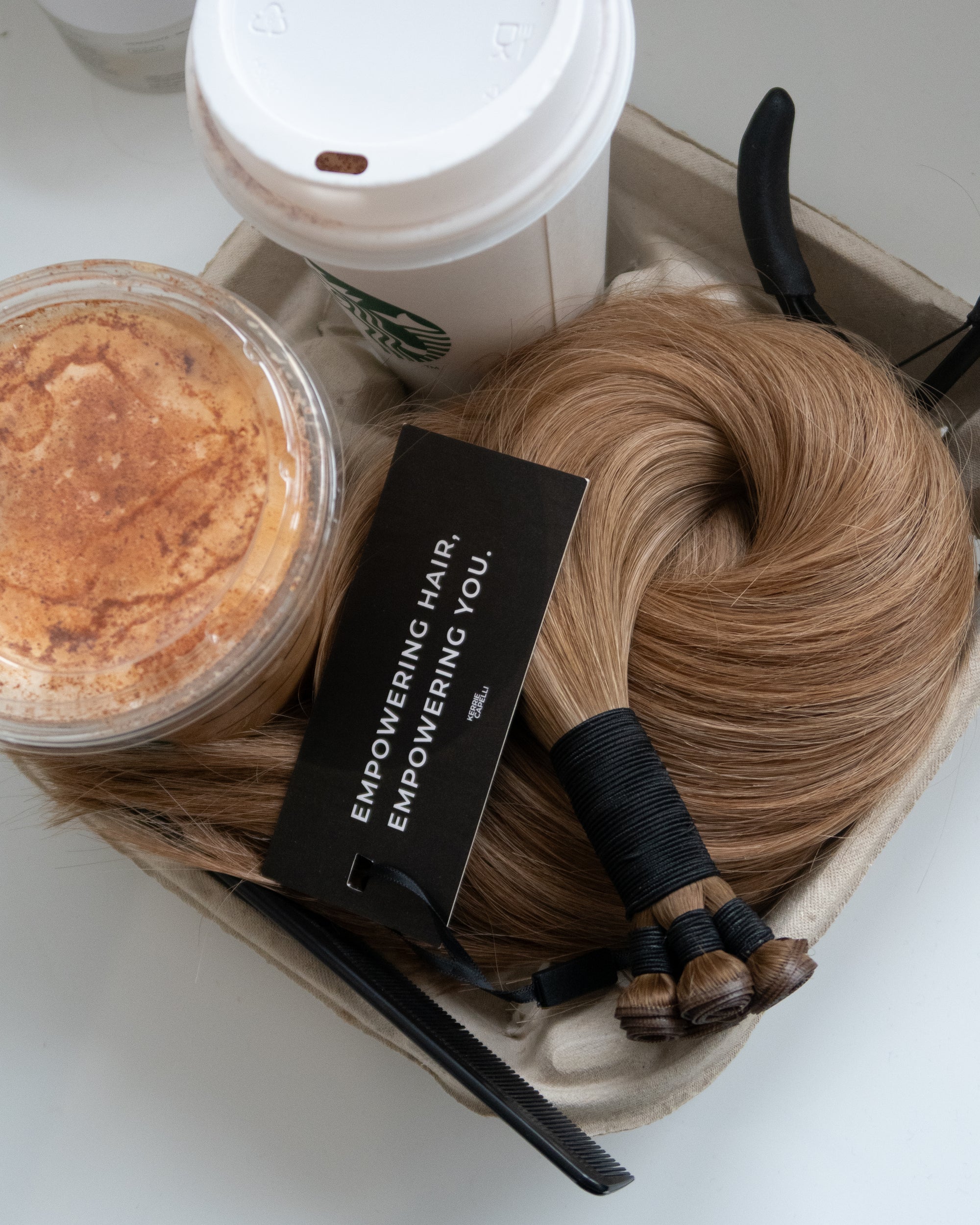 Super double drawn hair extensions are the highest-quality extensions available. Every strand is thick from root to tip, meaning no thinning or wispy ends. At Kerrie Capelli, we use only luxury European Remy hair, ensuring a silky, natural blend and long-lasting results.