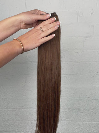 Elevate your salon's offerings with Kerrie Capelli Luxury Weft Hair Extensions, the ultimate choice for achieving luscious, full-bodied hair transformations. Crafted from the finest super double drawn European hair, these machine weft extensions provide your clients with a luxurious and natural look that stands out.