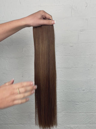 Elevate your salon's offerings with Kerrie Capelli Luxury Weft Hair Extensions, the ultimate choice for achieving luscious, full-bodied hair transformations. Crafted from the finest super double drawn European hair, these machine weft extensions provide your clients with a luxurious and natural look that stands out.