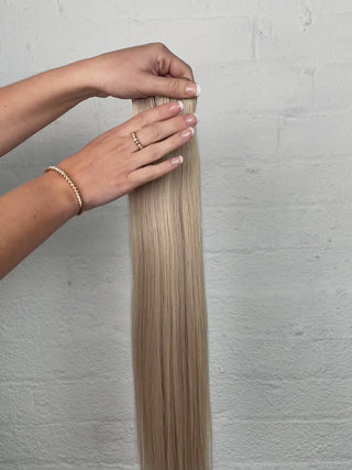 Elevate your salon's offerings with Kerrie Capelli Luxury Weft Hair Extensions, the ultimate choice for achieving luscious, full-bodied hair transformations. Crafted from the finest super double drawn European hair, these machine weft extensions provide your clients with a luxurious and natural look that stands out.